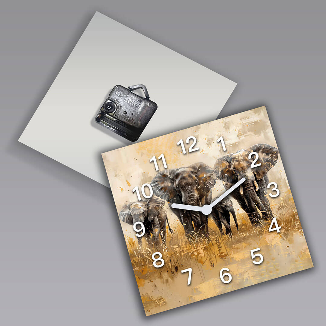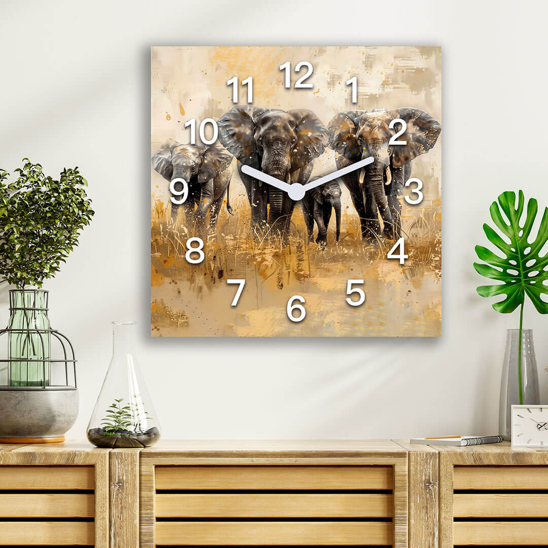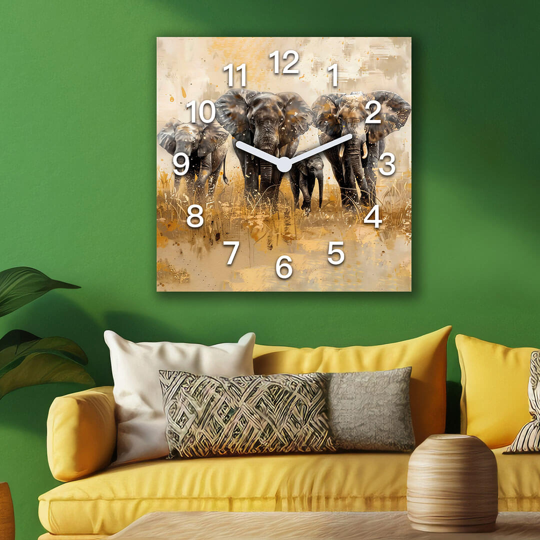 Zegar ścienny dekoracyjny kwadratowy Słonie w podróży przez Afrykę
