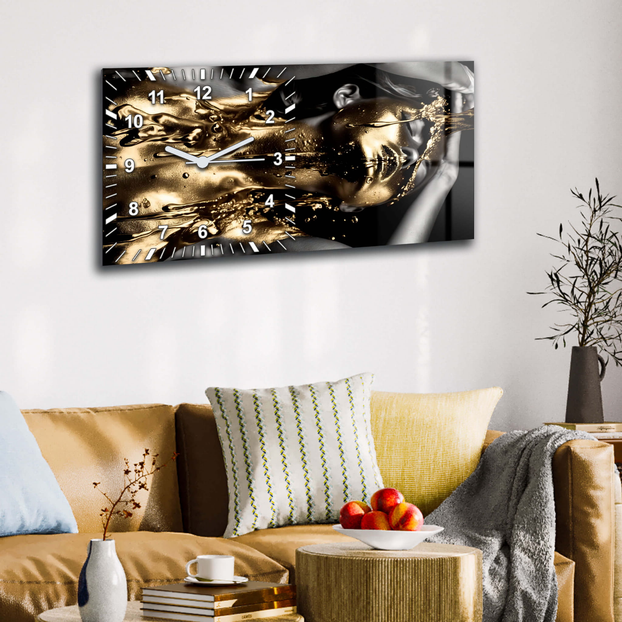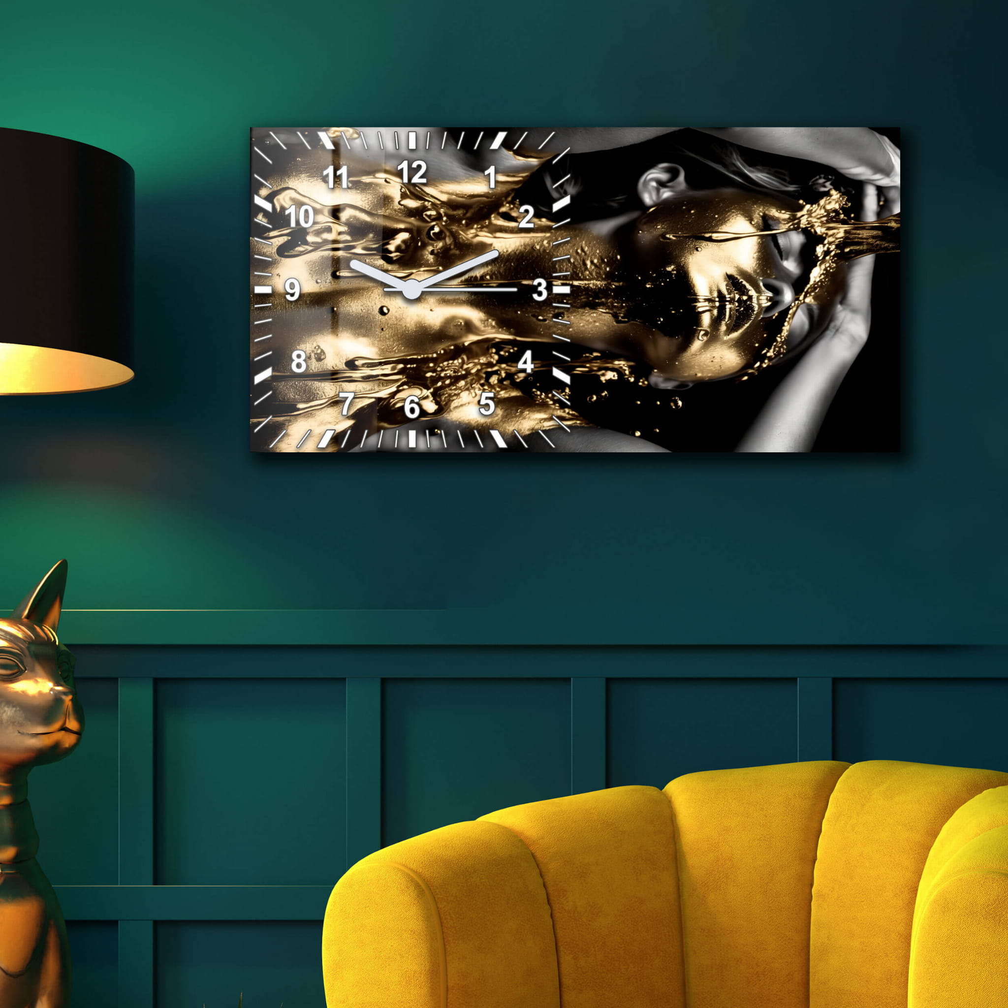 Zegar ścienny dekoracyjny prostokątny Kobieta Złota