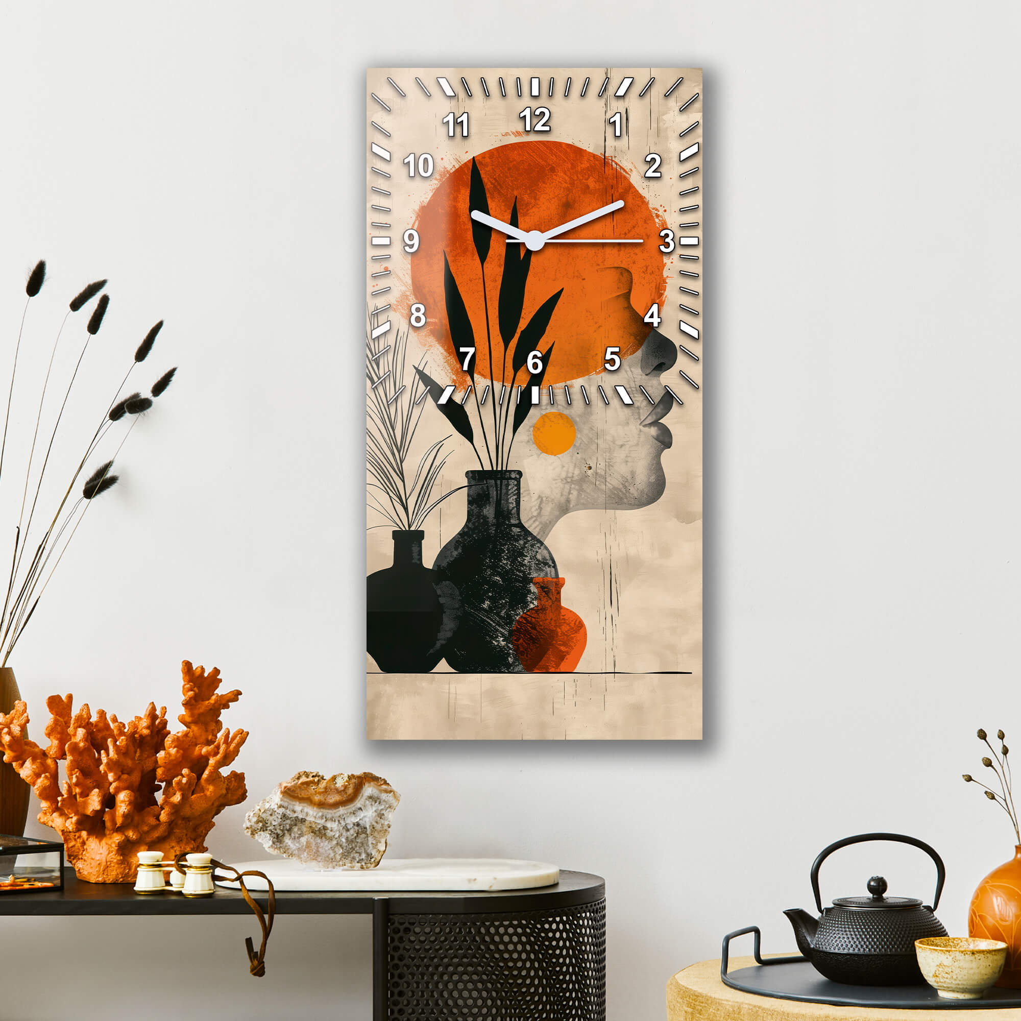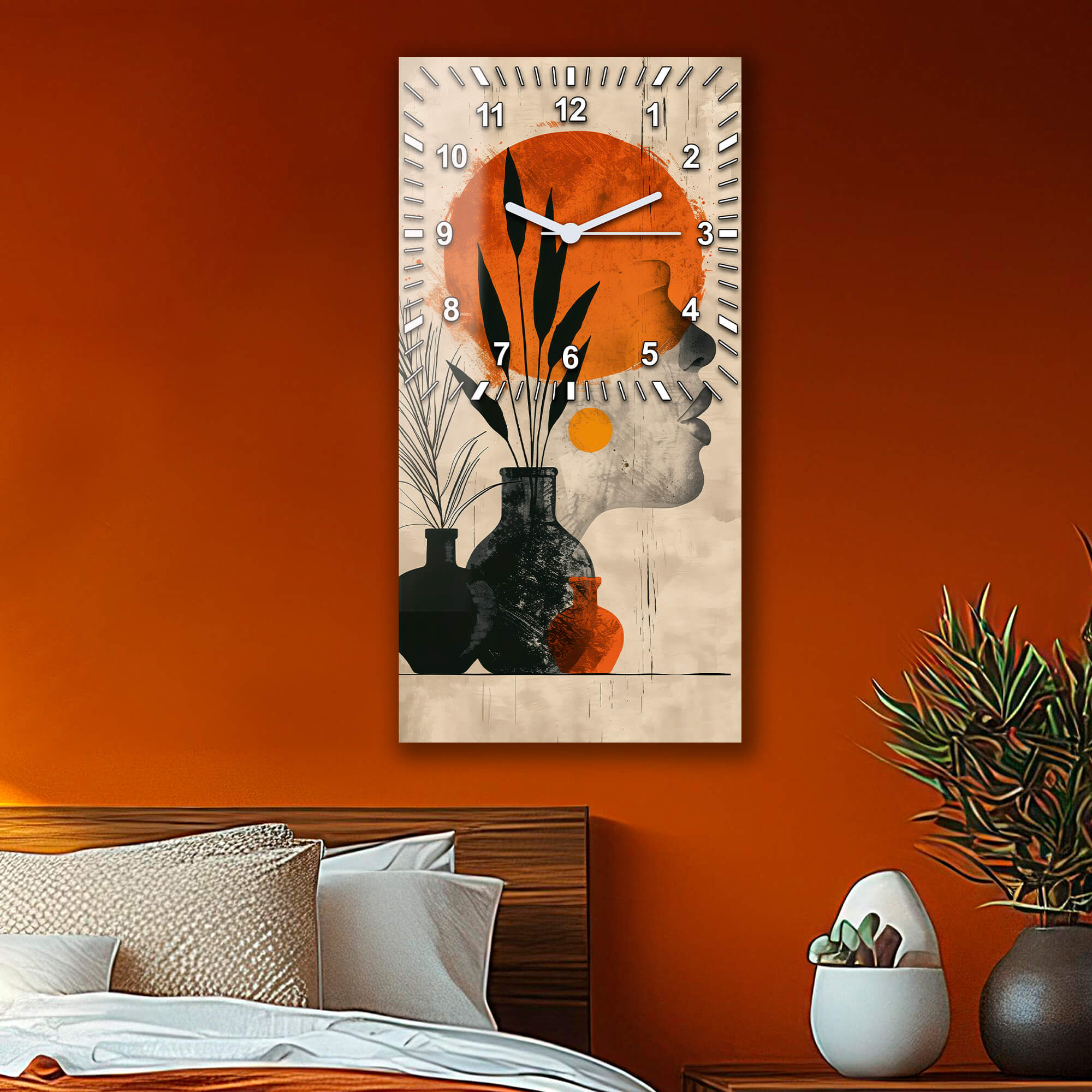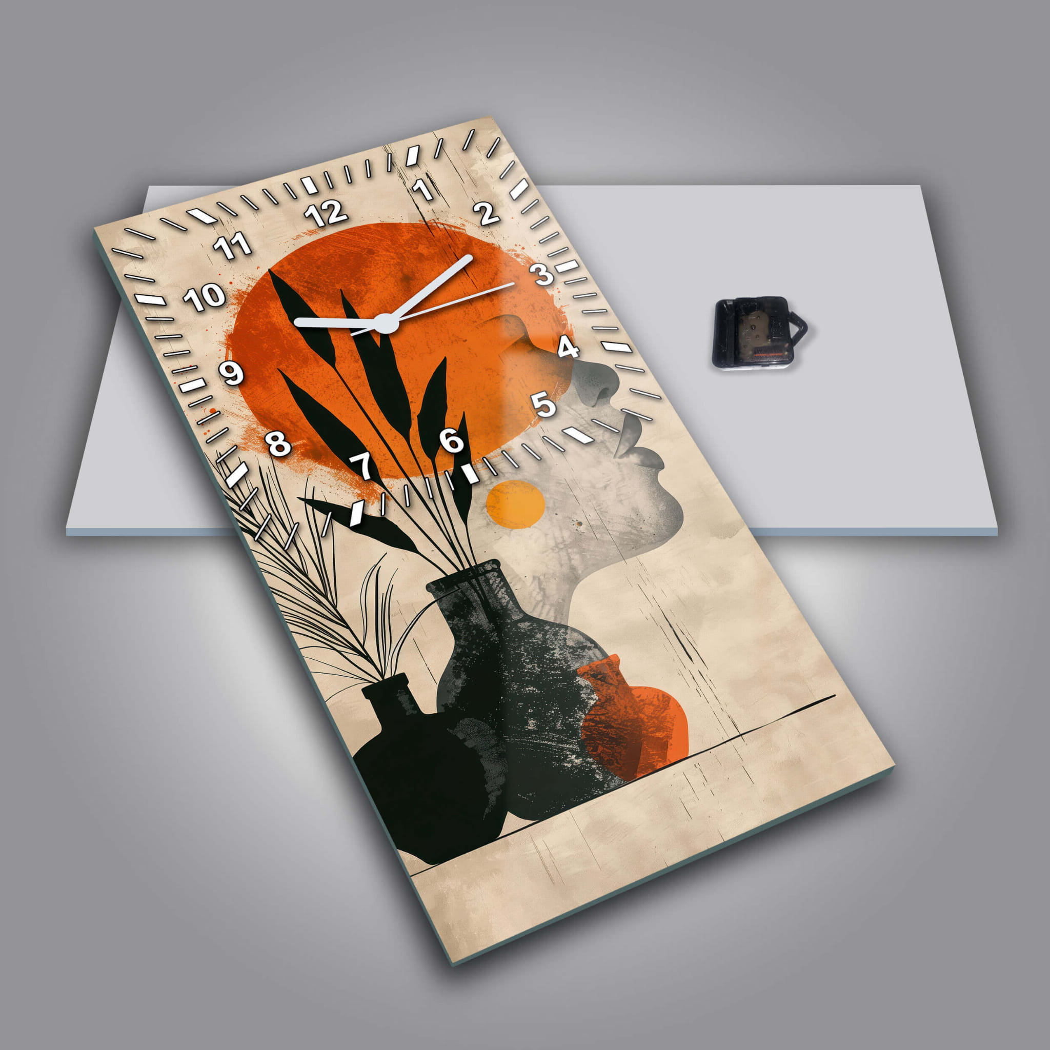 Dom • Katalog • ZEGARY ŚCIENNE • BOHO • Zegar ścienny 3d dekoracyjny prostokątny Boho z twarzą i roślinami