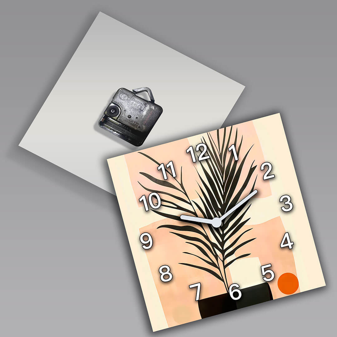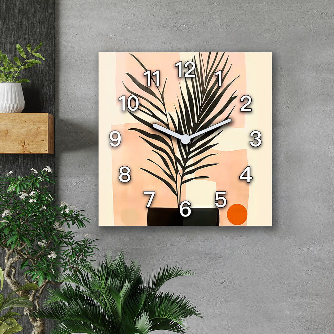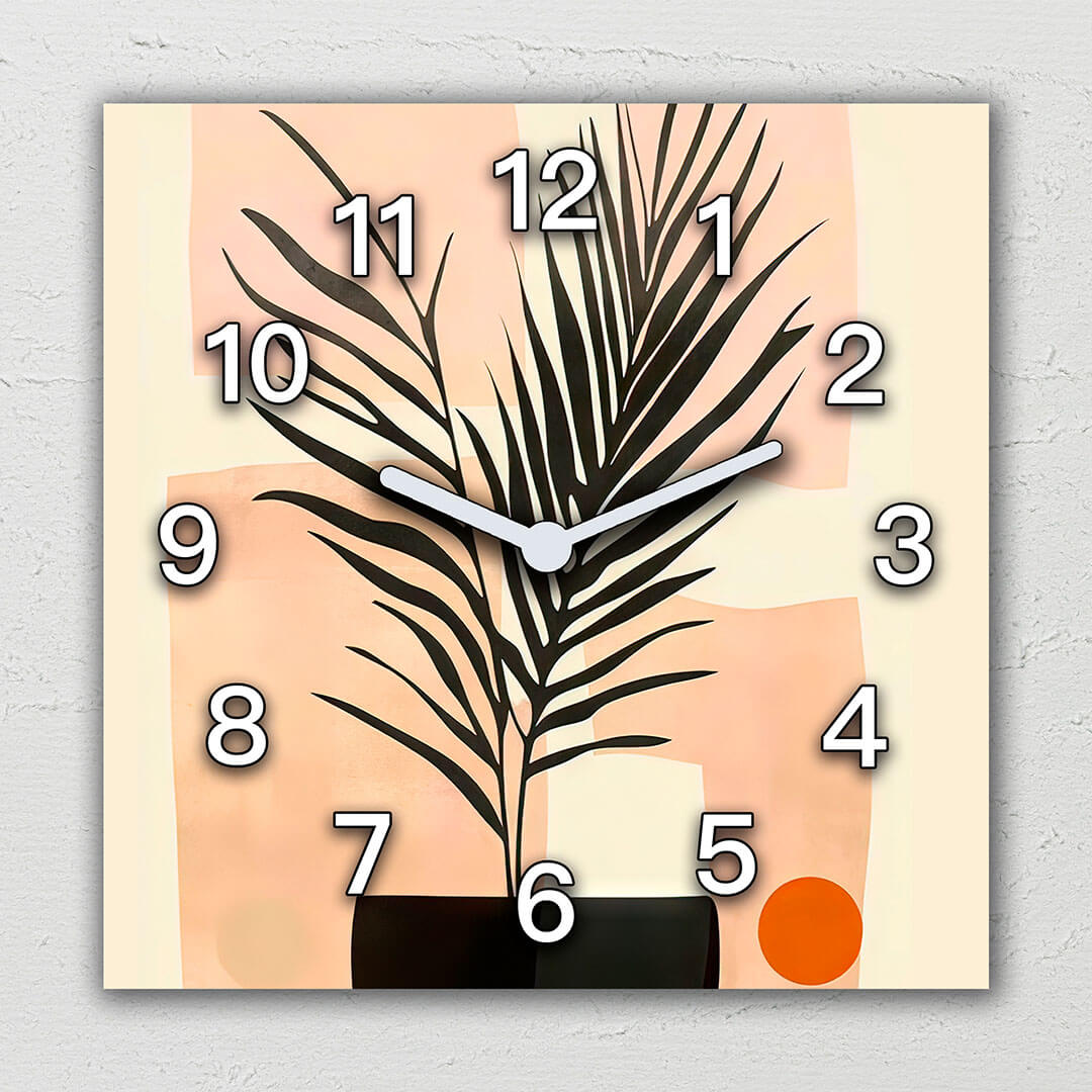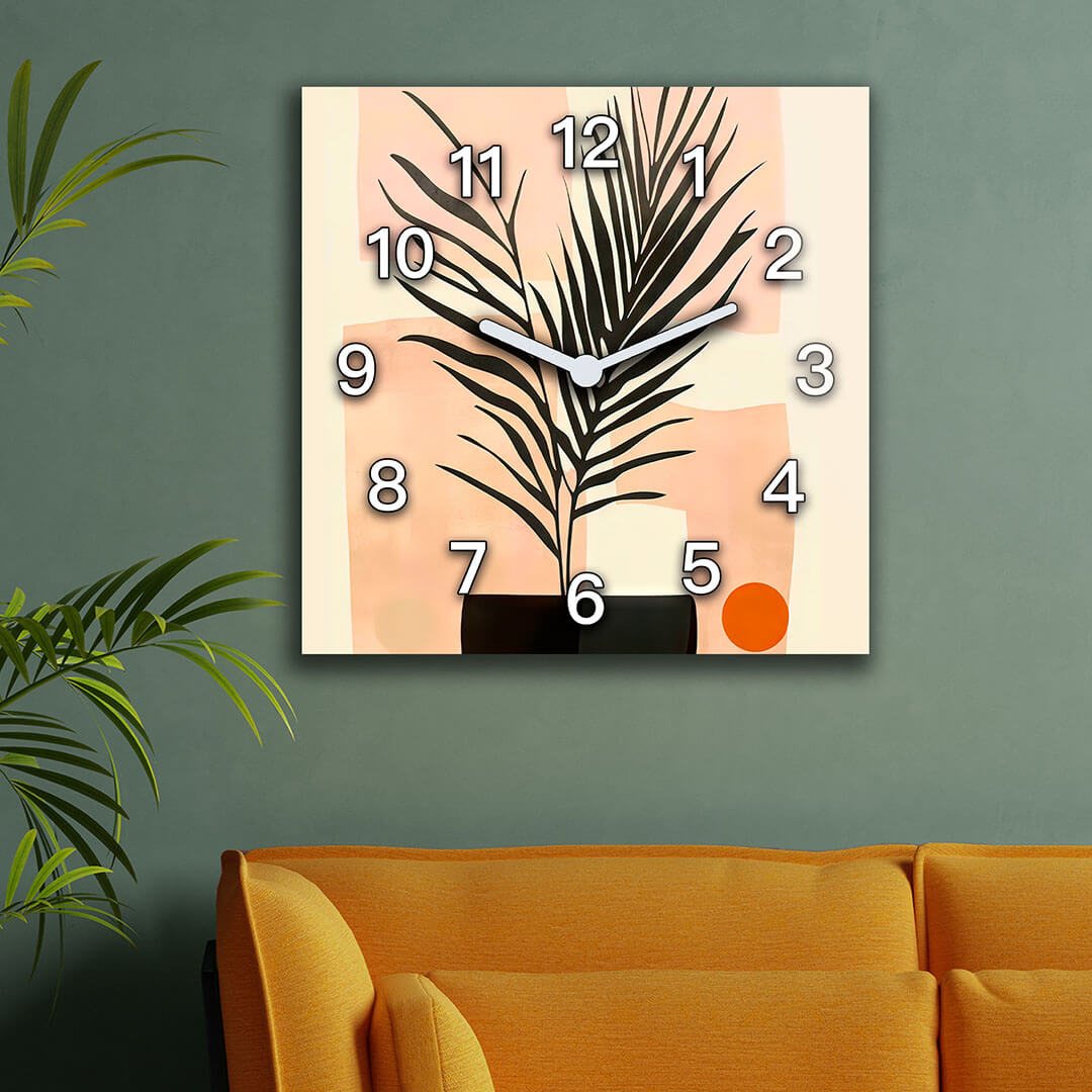 Dom • Katalog • ZEGARY ŚCIENNE • BOHO • Zegar ścienny dekoracyjny kwadratowy Abstrakcyjna roślina w stylu Boho