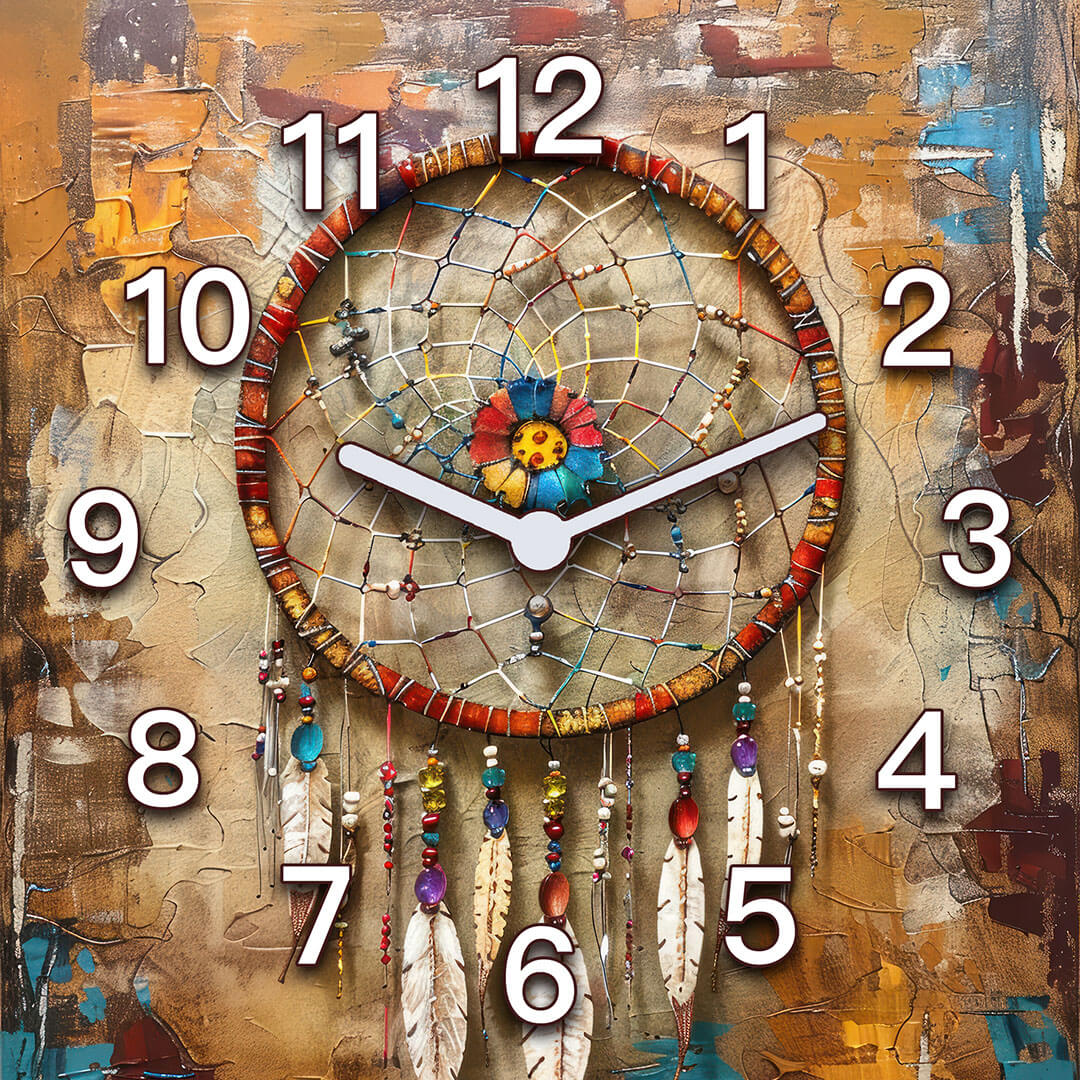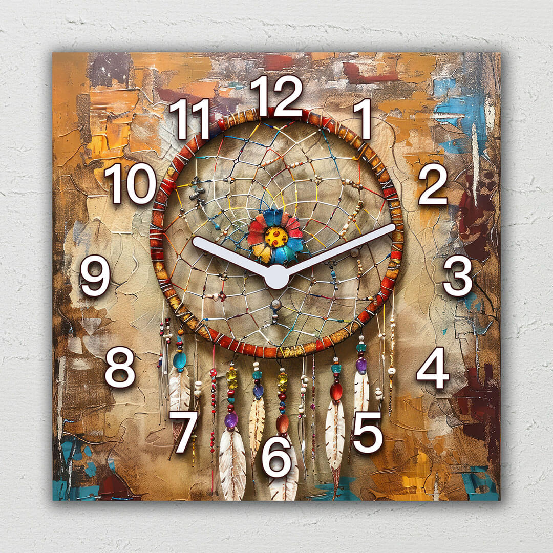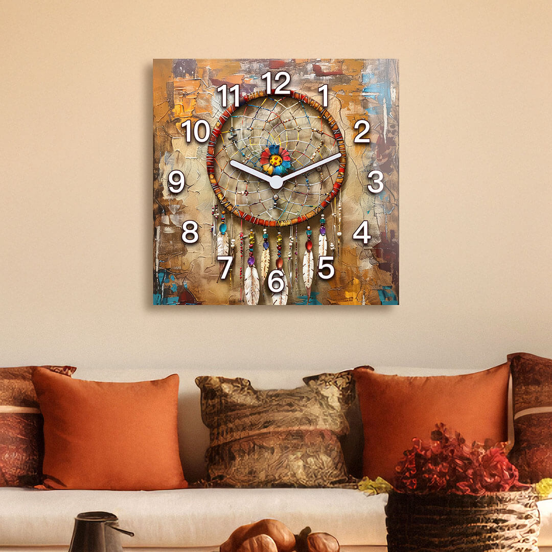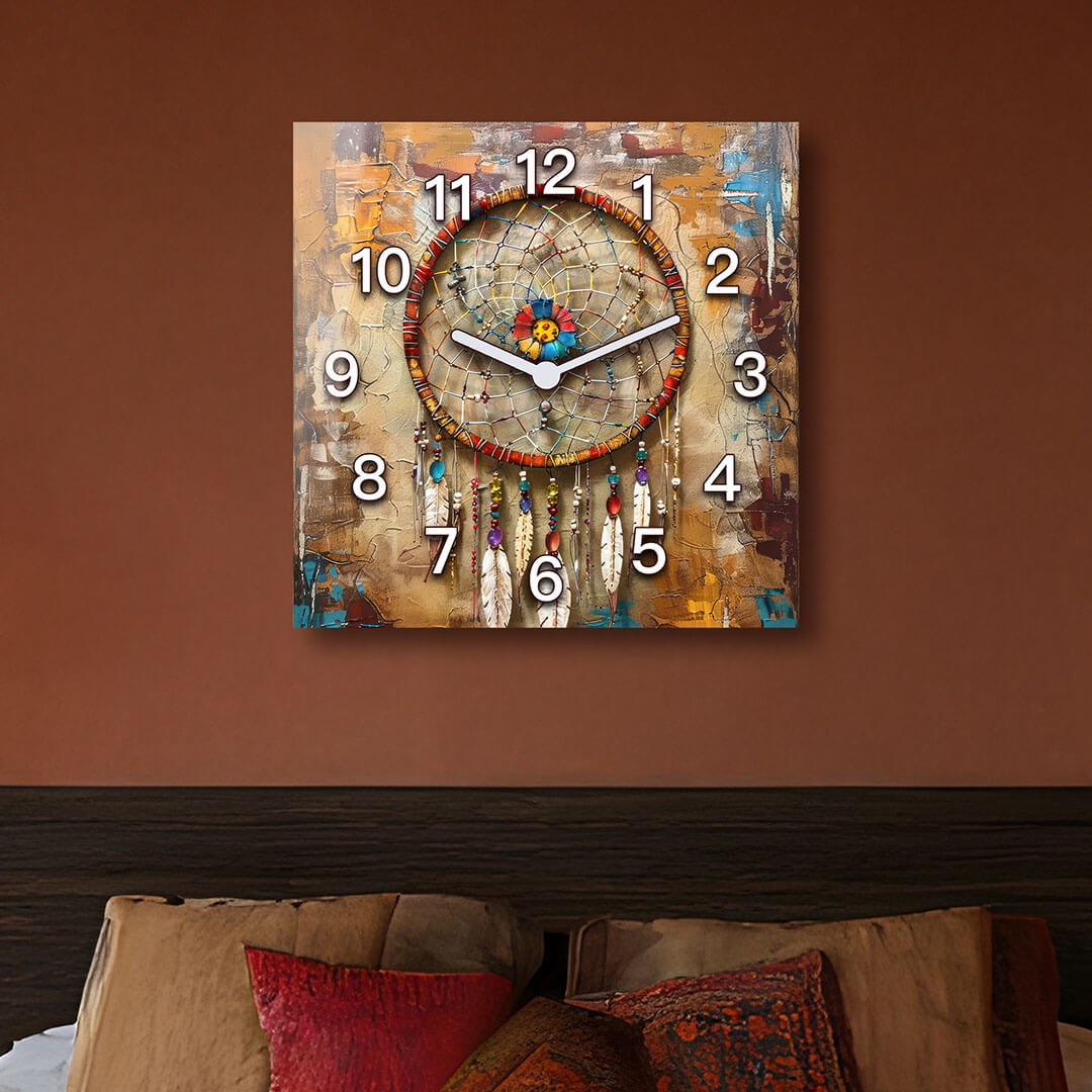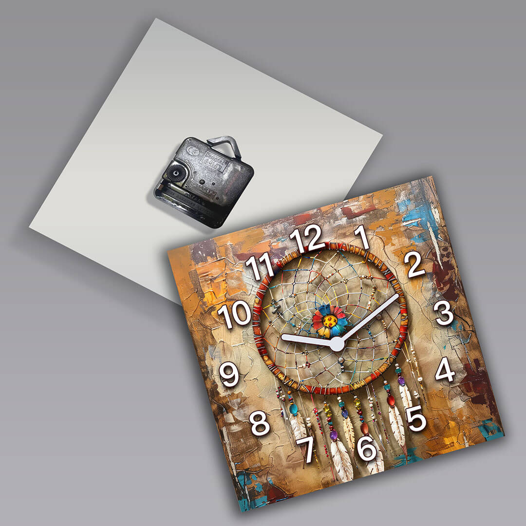 Dom • Katalog • ZEGARY ŚCIENNE • BOHO • Zegar ścienny dekoracyjny kwadratowy Abstrakcyjny łapacz snów