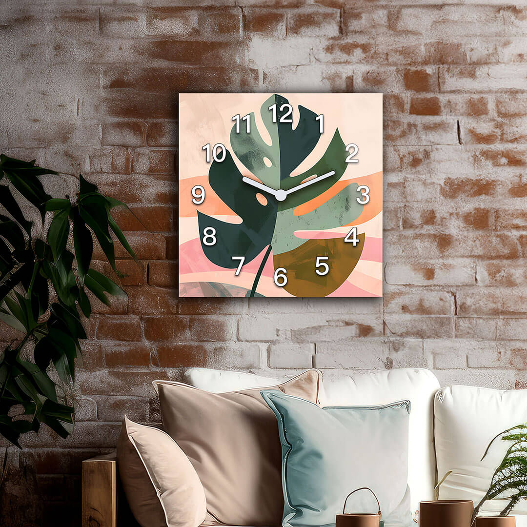 Dom • Katalog • ZEGARY ŚCIENNE • BOHO • Zegar ścienny dekoracyjny kwadratowy Abstrakcyjny liść