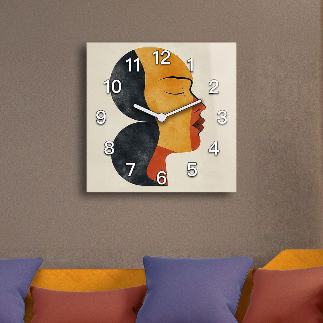 Dom • Katalog • ZEGARY ŚCIENNE • BOHO • Zegar ścienny dekoracyjny kwadratowy Abstrakcyjny portret kobiety