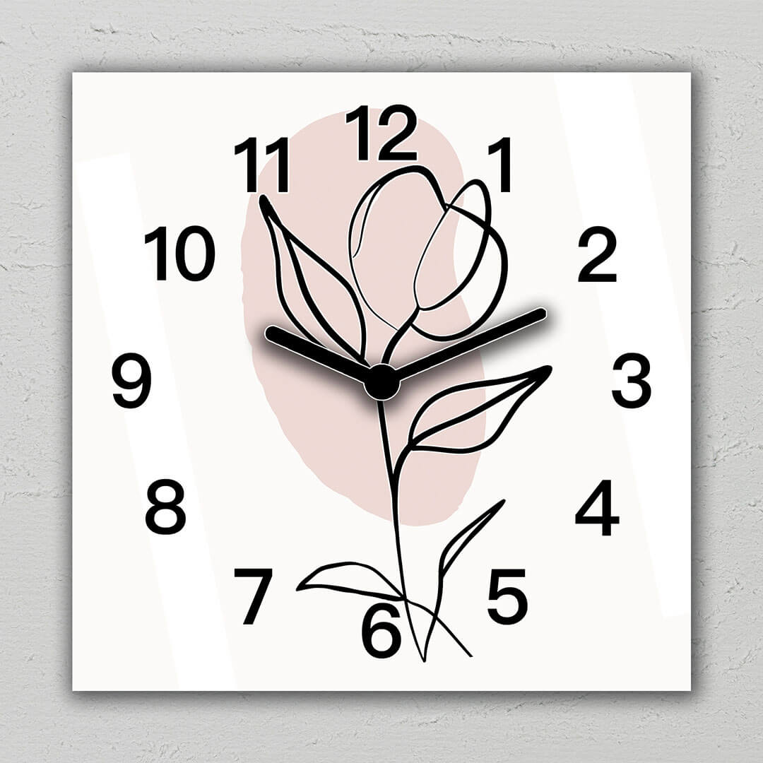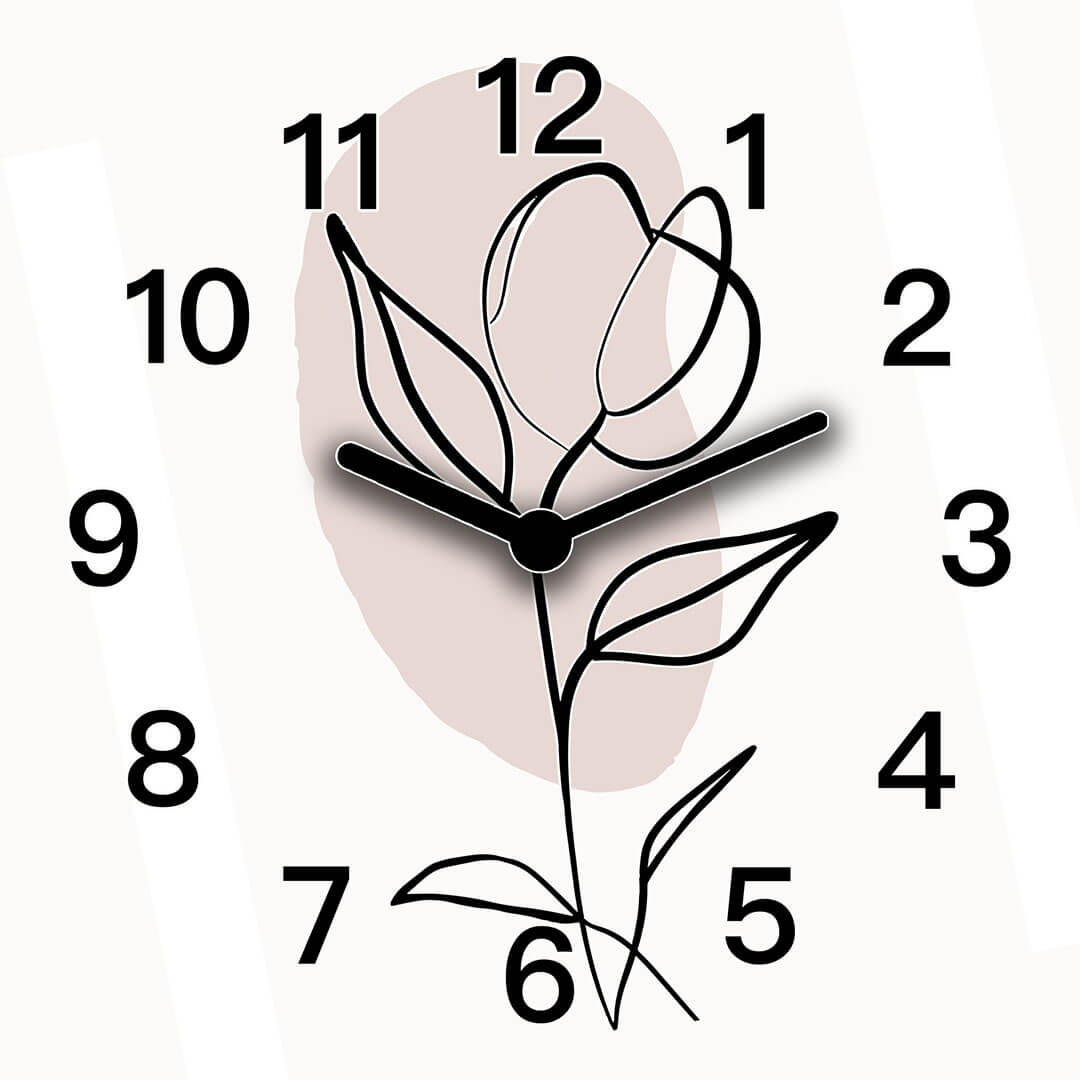 Dekoracyjny zegar ścienny „Abstrakcyjny rysunek kwiatu” łączy w sobie elementy minimalistycznego designu z elegancją natury. Stylowy rysunek kwiatu przedstawiony jest na delikatnym, pastelowym tle, podkreślając elegancję i prostotę. Czarne linie tworzą wyrafinowaną kompozycję przypominającą kwiatową naturę i tworzą kontrast z białym tłem. Duże cyfry wyraźnie wyróżniają się na tle, nadając zegarkowi nowoczesny i stylowy wygląd. Zegarek ten będzie doskonałym akcentem we współczesnych wnętrzach, dodając element natury, elegancji i minimalizmu do każdego pomieszczenia.