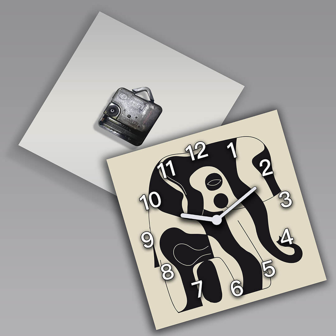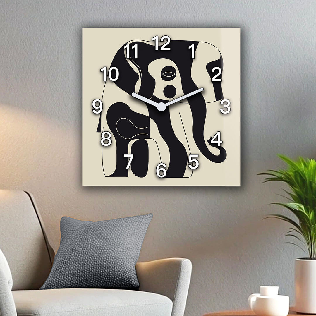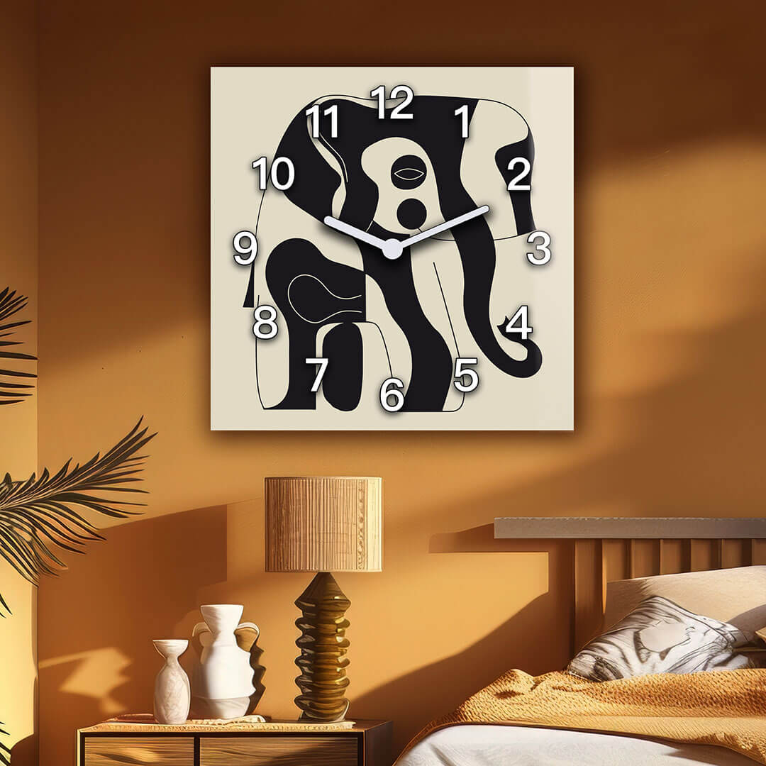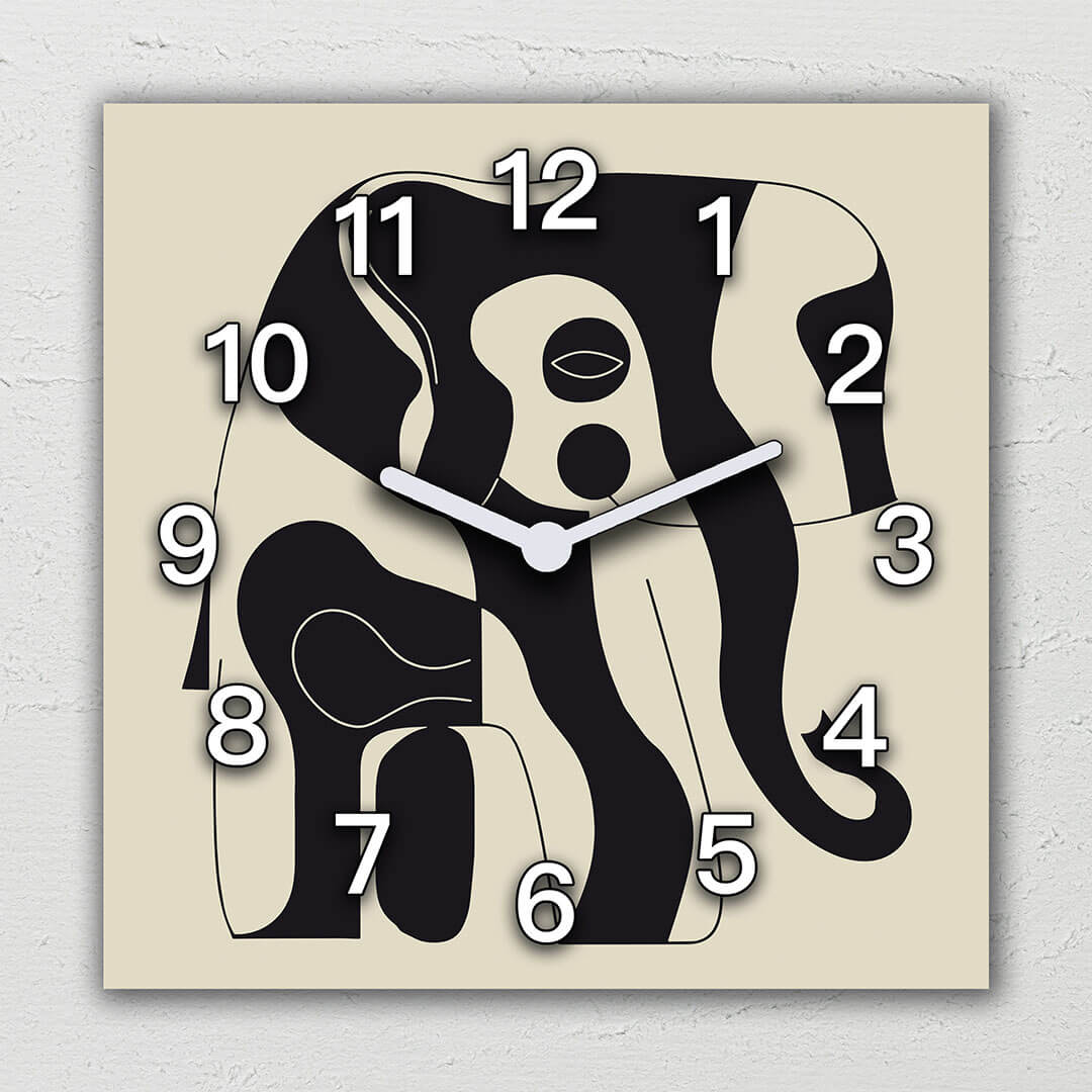 Dom • Katalog • ZEGARY ŚCIENNE • BOHO • Zegar ścienny dekoracyjny kwadratowy Abstrakcyjny słoń w stylu boho