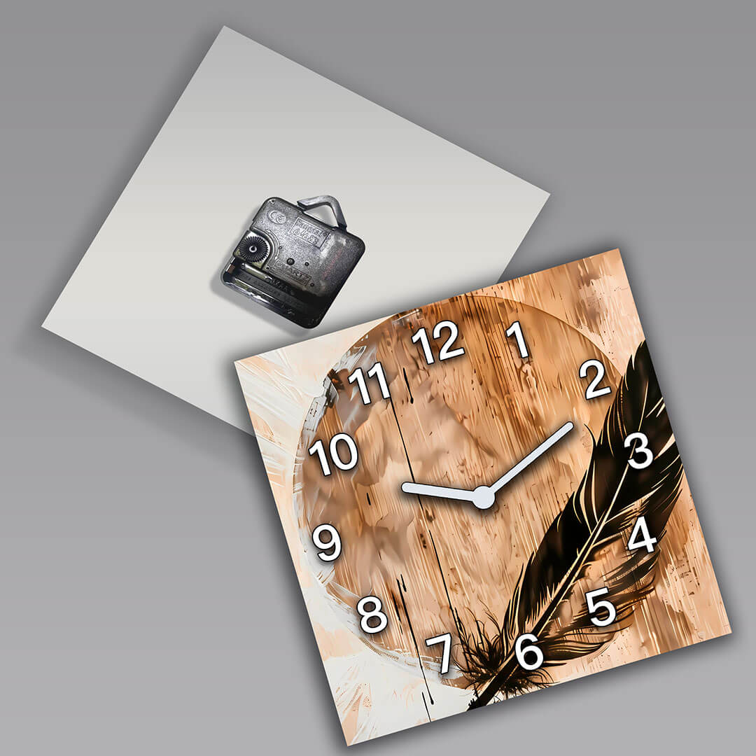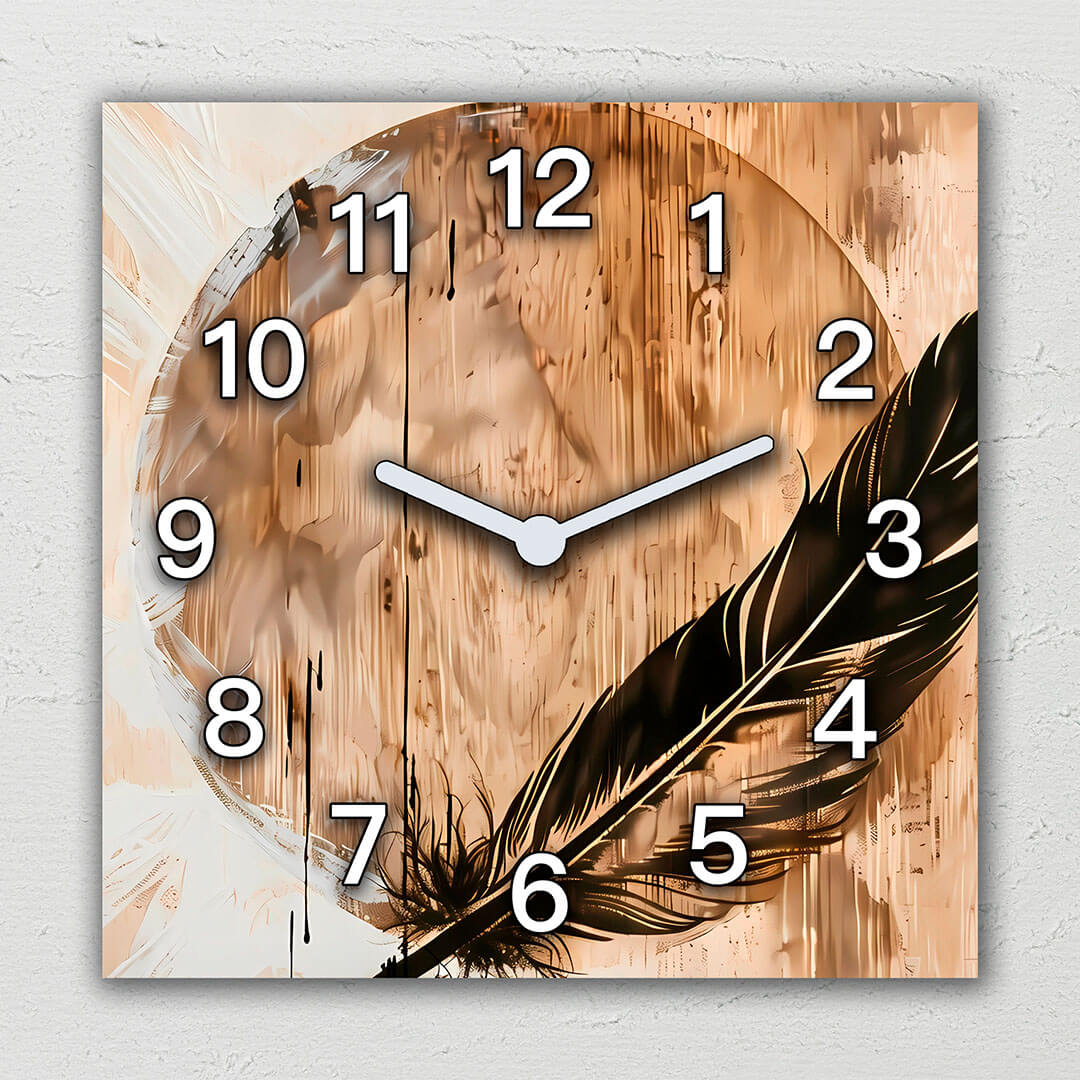 Dom • Katalog • ZEGARY ŚCIENNE • BOHO • Zegar ścienny dekoracyjny kwadratowy Artystyczne pióro