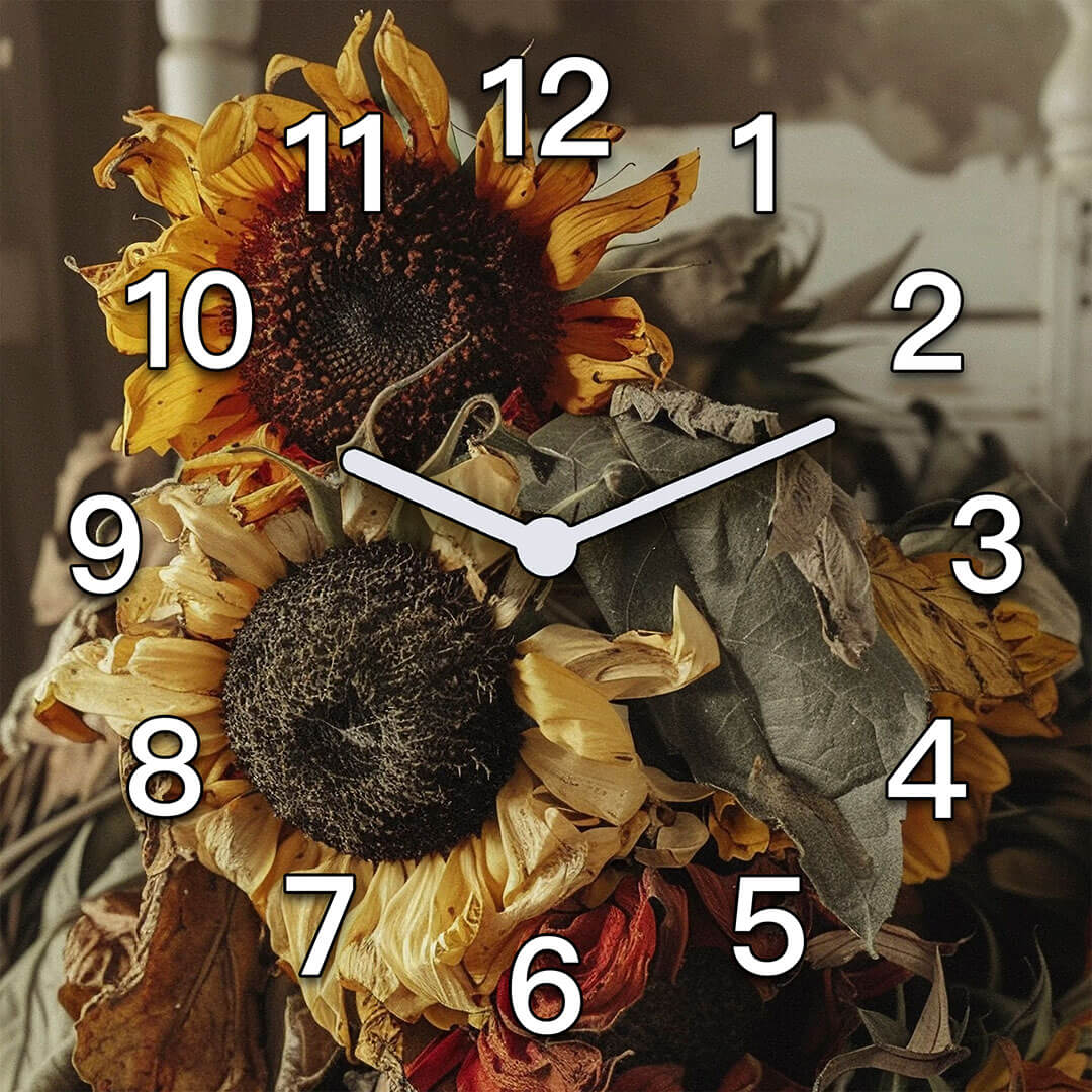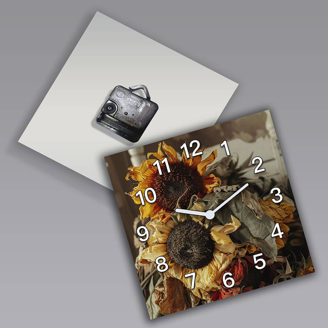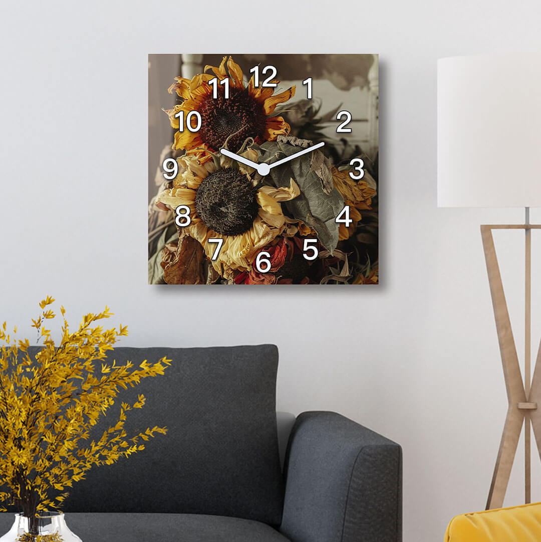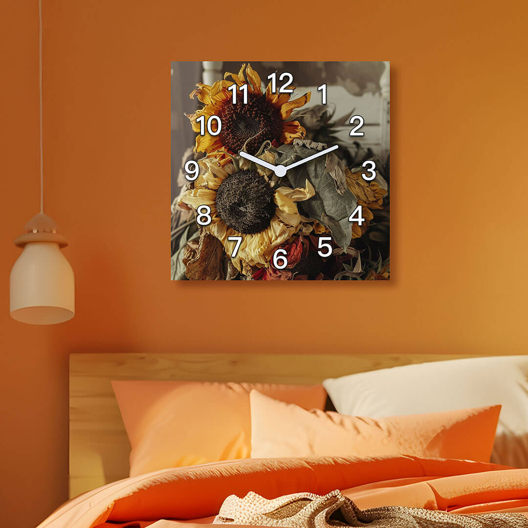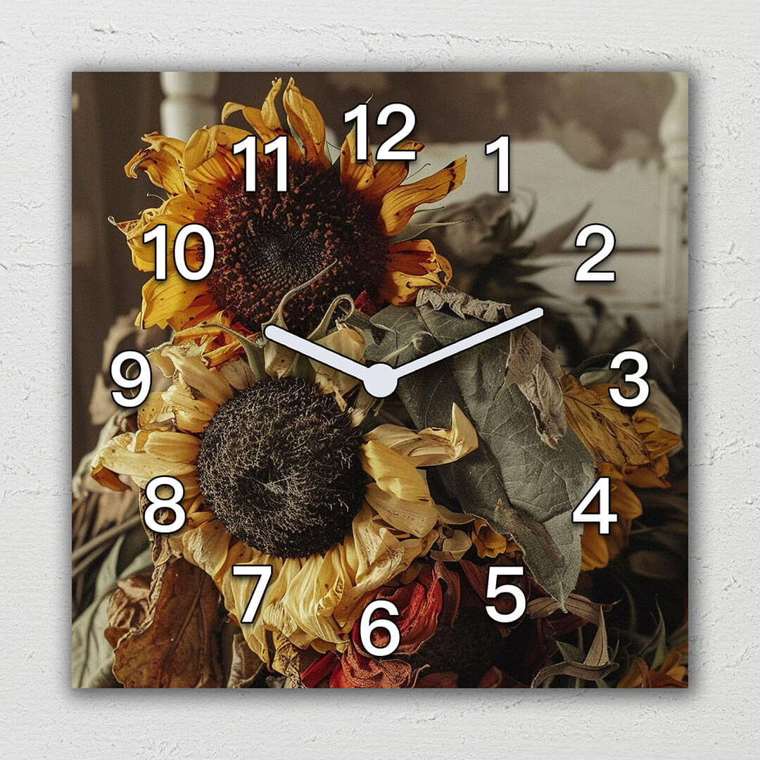 Dom • Katalog • ZEGARY ŚCIENNE • BOHO • Zegar ścienny dekoracyjny kwadratowy Boho bukiet słoneczników