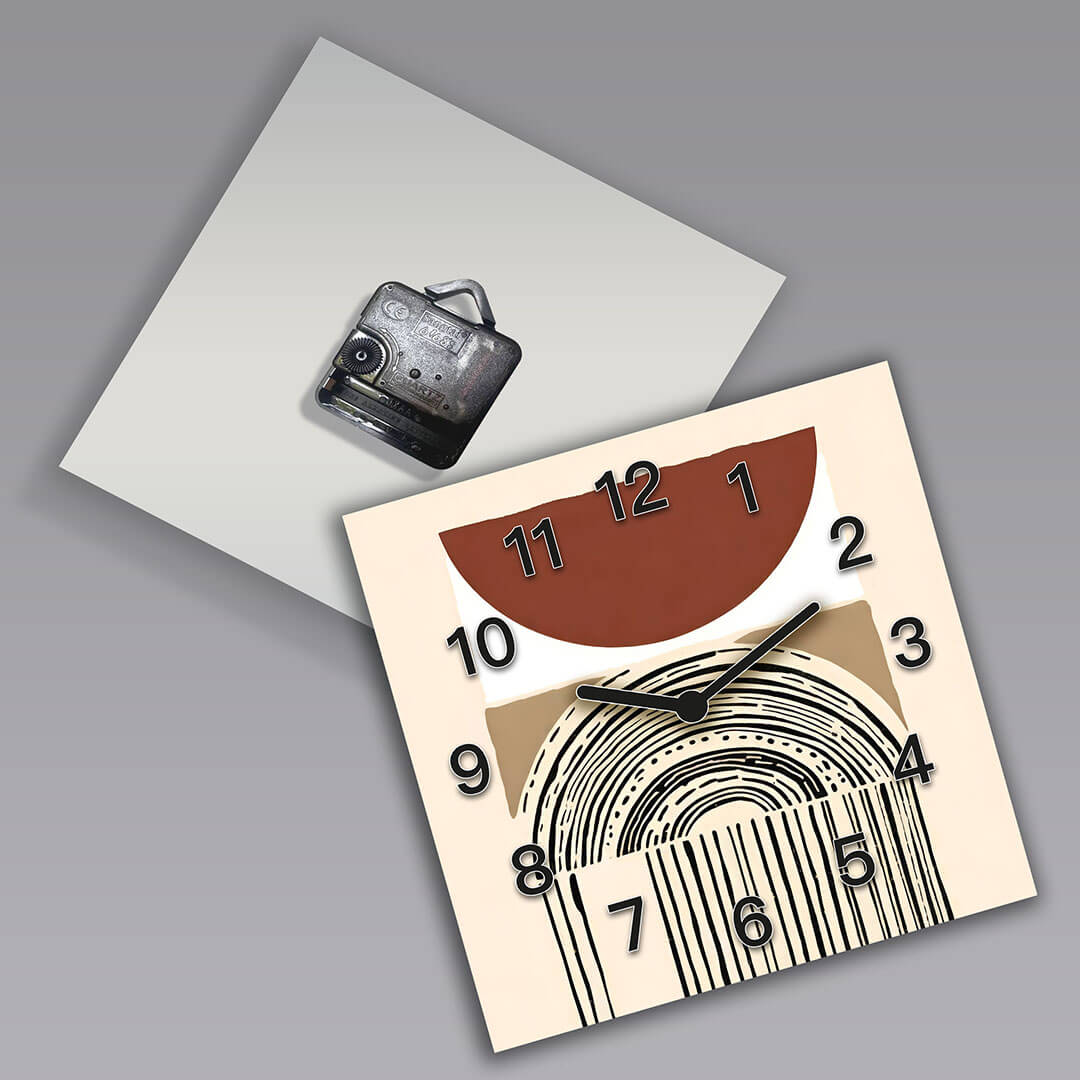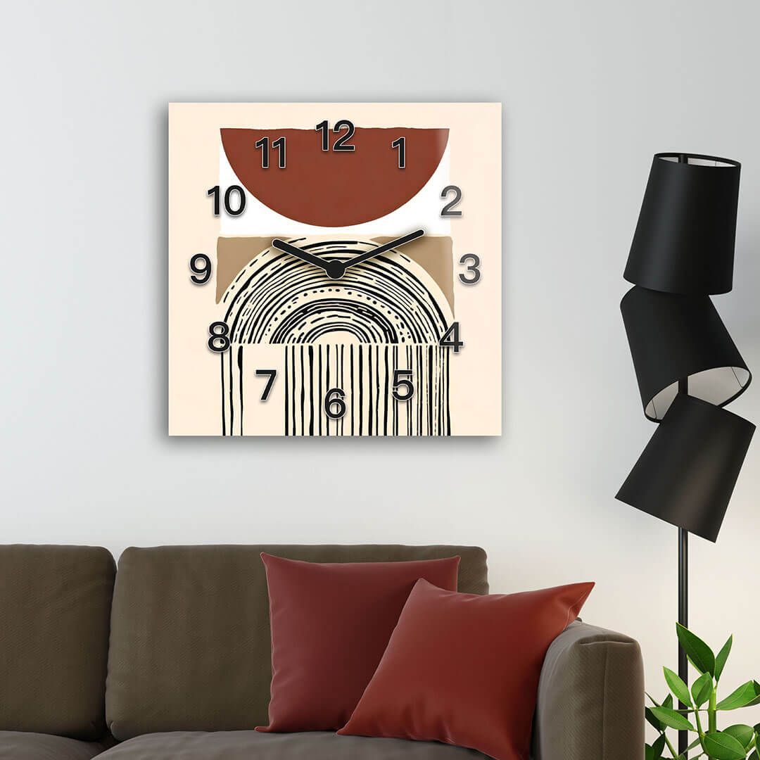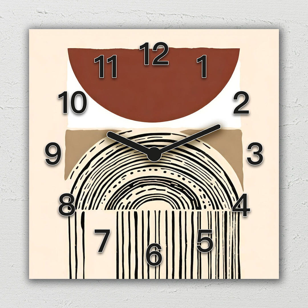 Dom • Katalog • ZEGARY ŚCIENNE • BOHO • Zegar ścienny dekoracyjny kwadratowy Boho z Tęczą i Ciepłymi Kolorami