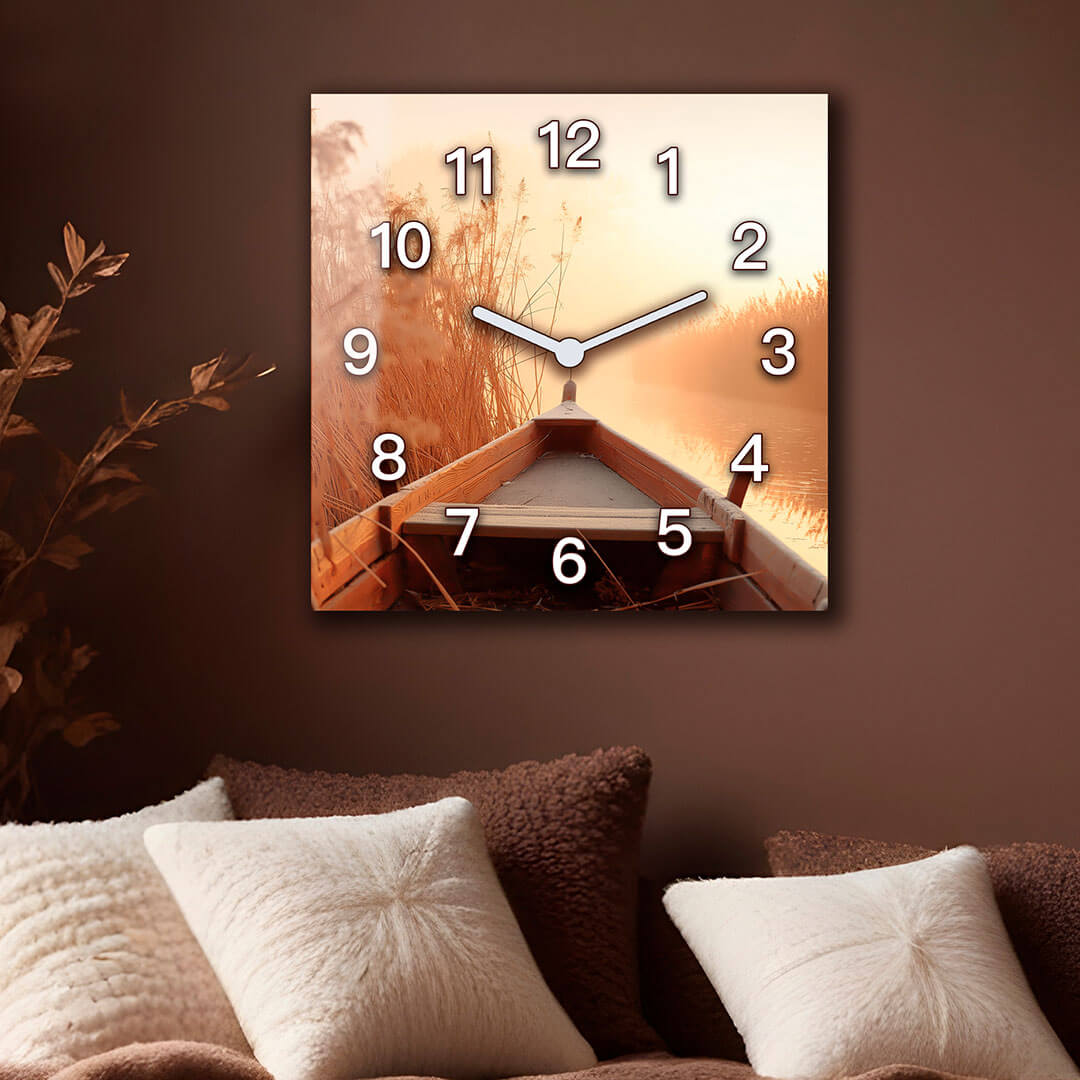 Dom • Katalog • ZEGARY ŚCIENNE • BOHO • Zegar ścienny dekoracyjny kwadratowy Poranna mgła nad wodą