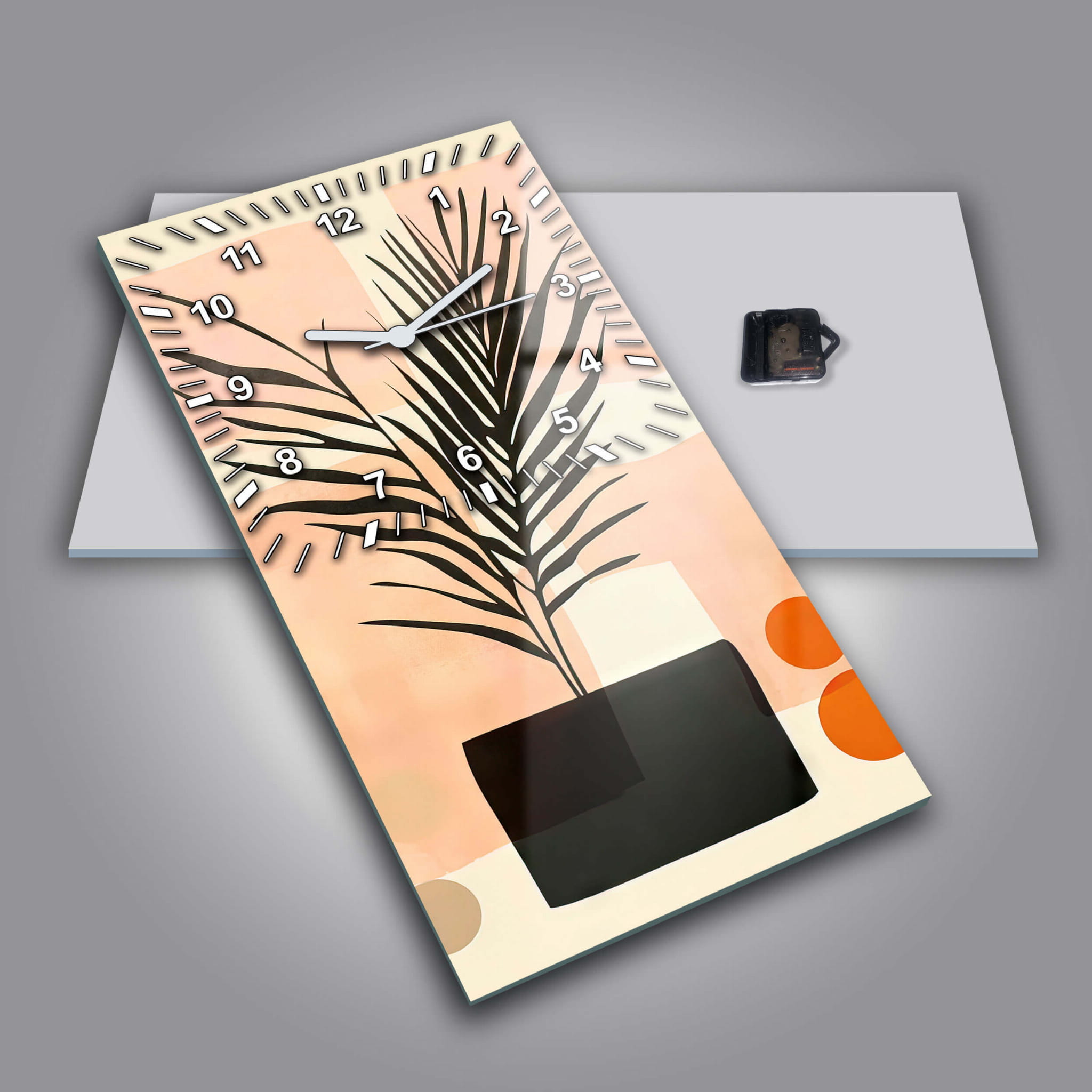 Dom • Katalog • ZEGARY ŚCIENNE • BOHO • Zegar ścienny dekoracyjny prostokątny Abstrakcyjna roślina w stylu Boho