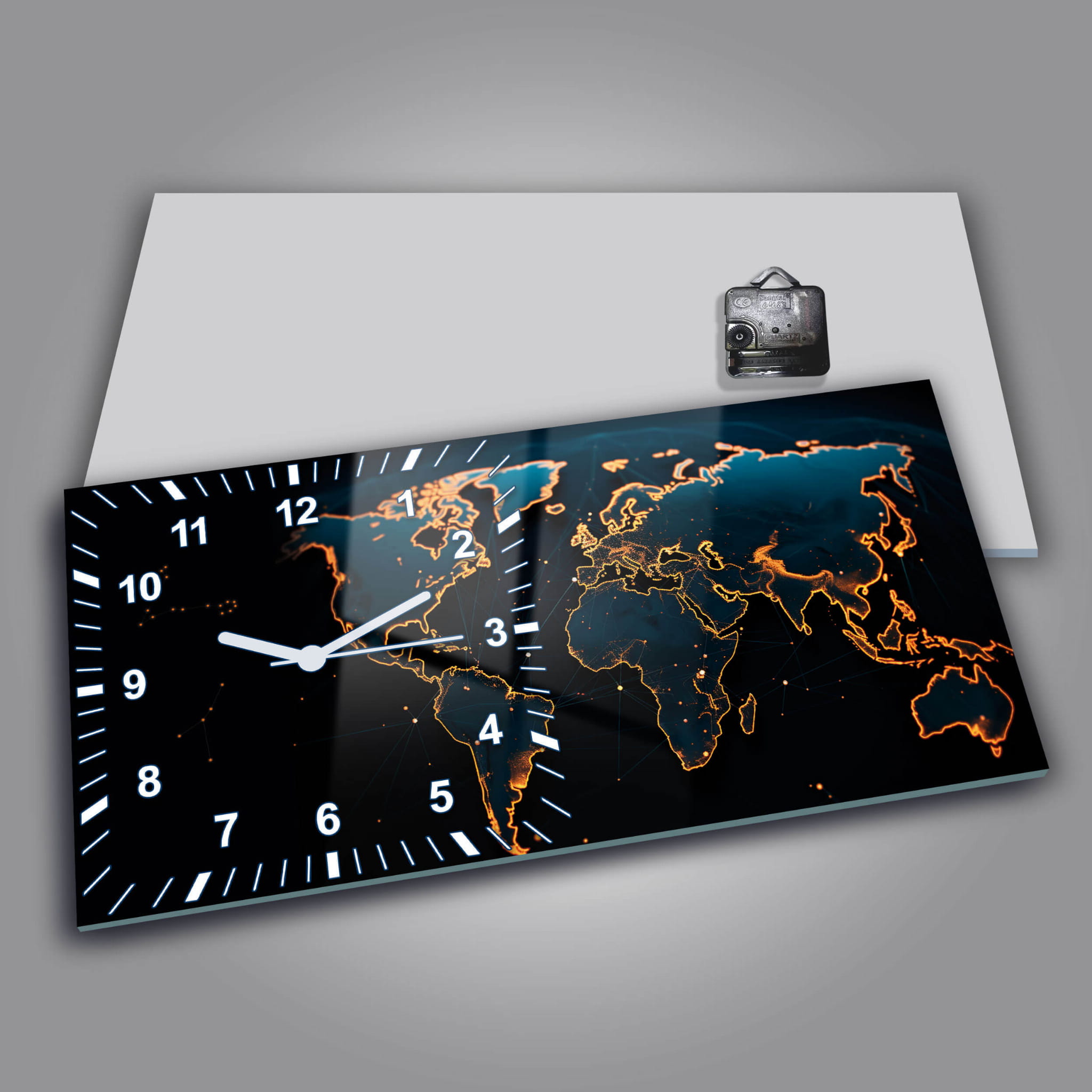 Dom • Katalog • ZEGARY ŚCIENNE • SPORT I PODRÓŻE • Zegar ścienny dekoracyjny prostokątny Mapa świata