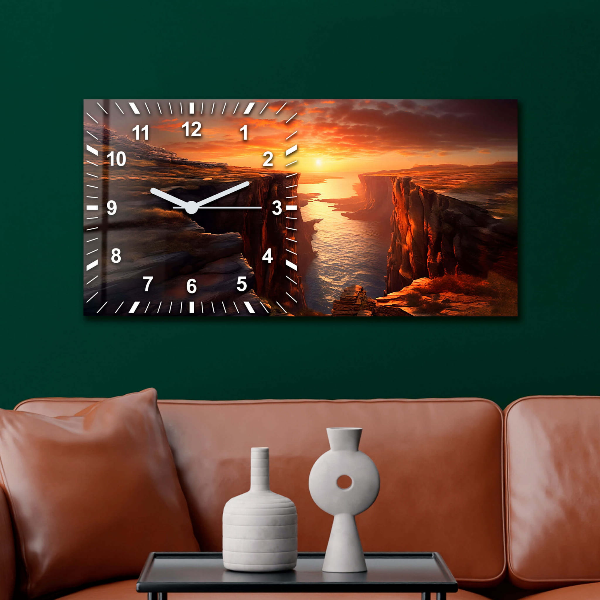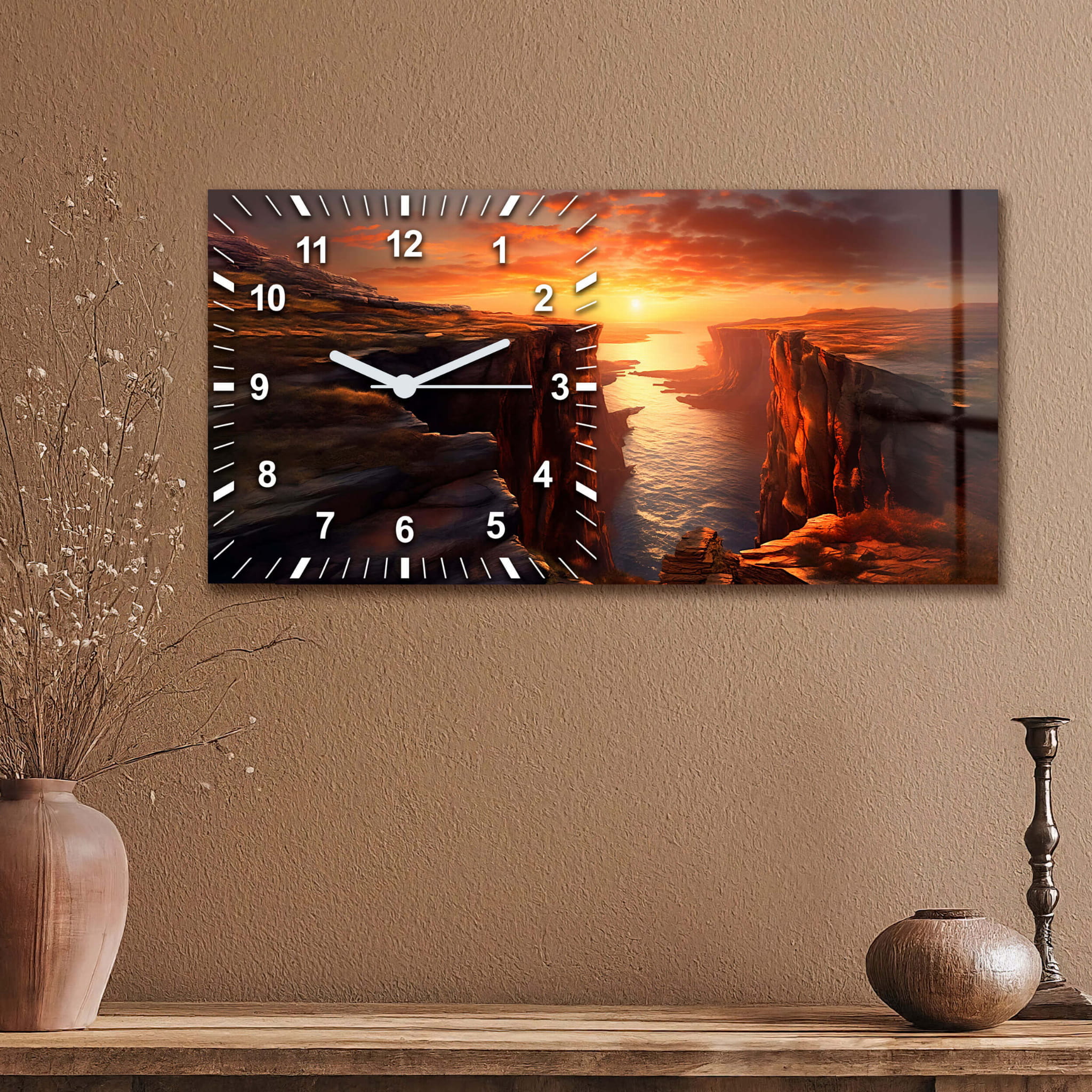 Zegar ścienny dekoracyjny prostokątny Górska Rzeka o Zachodzie Słońca