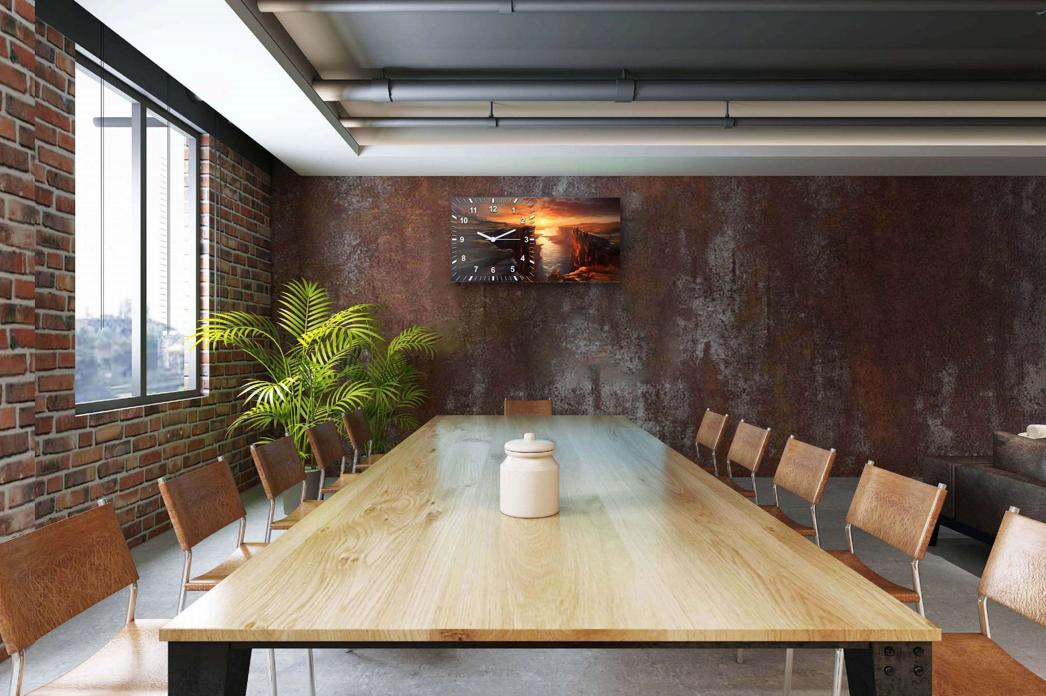 Szklany zegar ścienny z nadrukiem UV wprowadza do wnętrza elegancję i funkcjonalność w jednym.